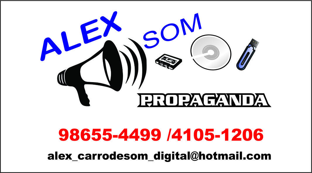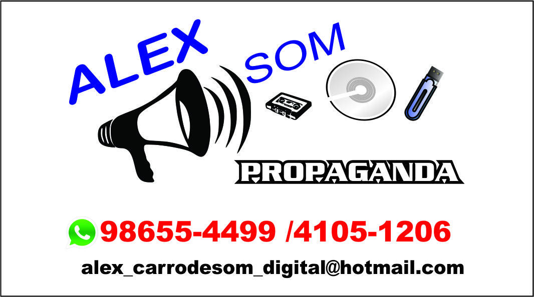 A Alex Som e Propaganda Começou a sua história no ano de 2013 profissional gabaritado trabalhou 18 anos com o Avelar Som atiando com Clientes de vários segmentos. Com enorme prazer em prestar serviços com total eficácia e grande comércios.